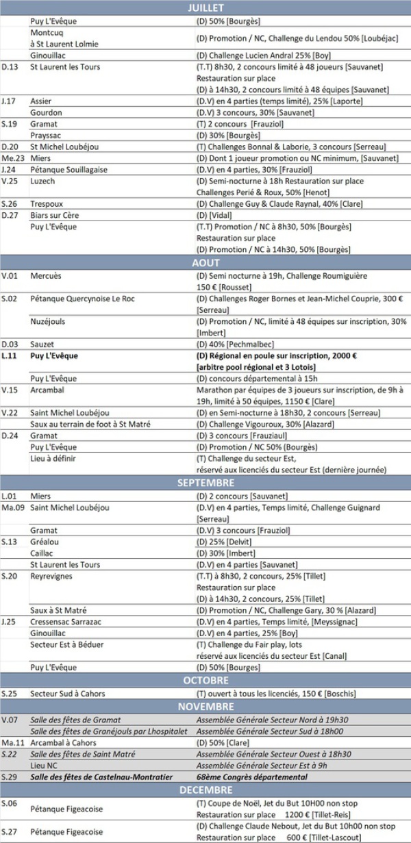 à Cahors ouvert à tous les licenciés organisé par le secteur sud