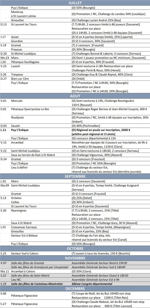 Le 18/11/2024 mise à jour du palmarès des meilleurs joueurs Lotois ICI