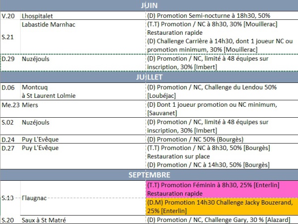 De ce fait, les joueurs promotions passant honneurs ne peuvent pas jouer les épreuves promotions programmées en fin d'année