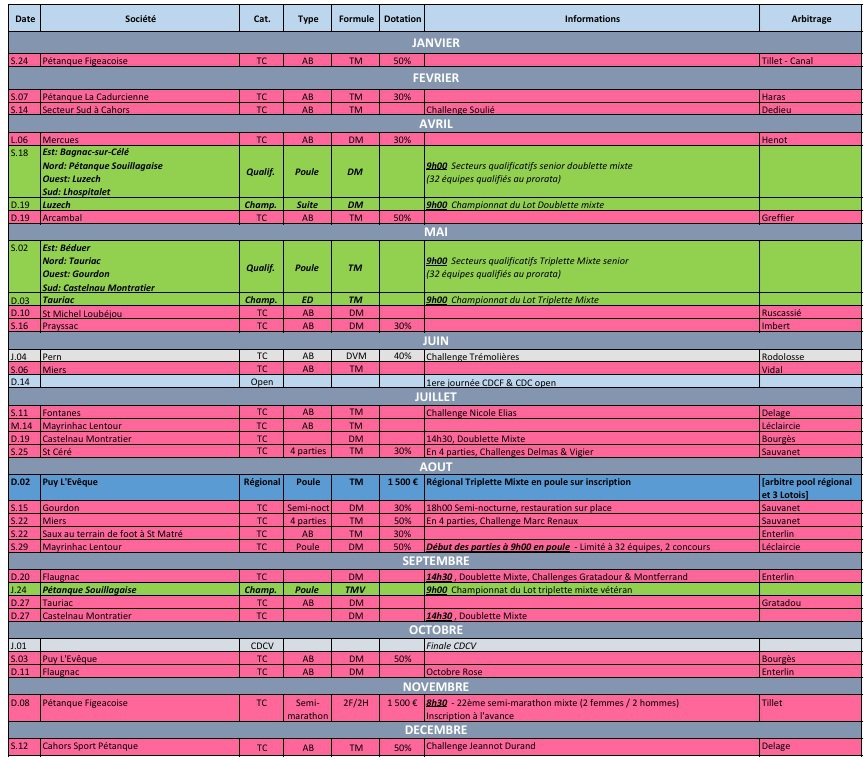 24/01 Concours Triplette Mixte, à Figeac organisé à 14h30 par la Pétanque Figeacoise, engagements +50%