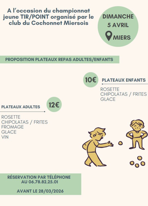 Affiche Menu Championnat Point et Tir Jeunes le 5 avril à MIERS ICI