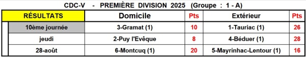Résultats 10ème journée