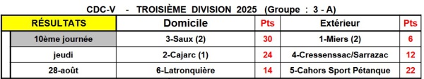 07/09 Résultats et classement du CDC Provençal après la 5ème journée ICI