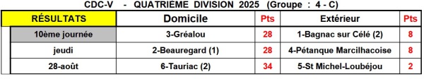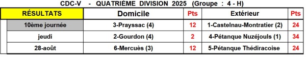 Ci joint le nouveau classement du Groupe H et de la 4ème division