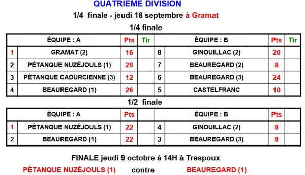 A Gramat le jeudi 18 septembre 2025 à 14h30 : 1/2 de finales :
