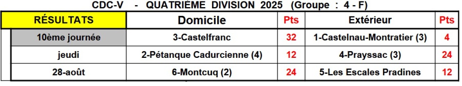 Les 2 équipes de Castelnau-Montratier sont dans la même division (4ème)