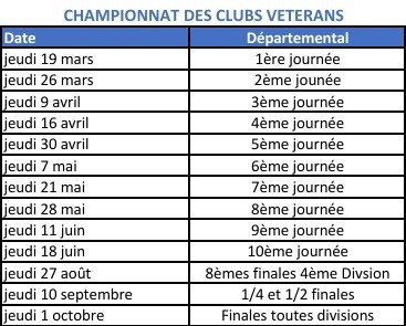 Calendrier des rencontres CDC Vétérans