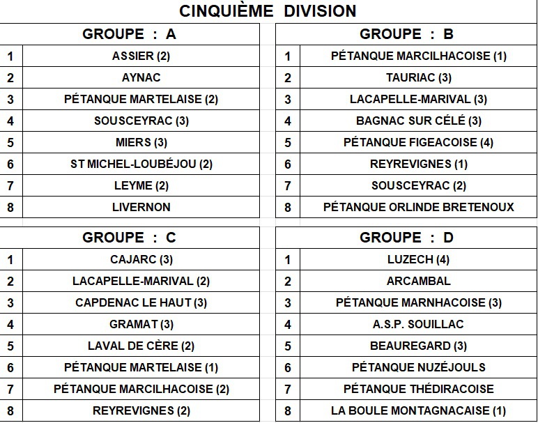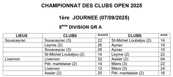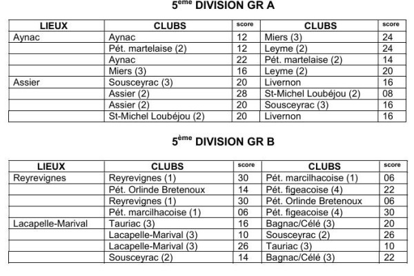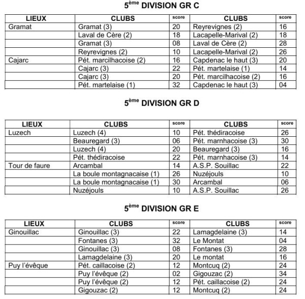 Classement 5eme div. CDC OPEN 3eme journ[...]