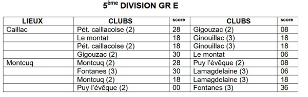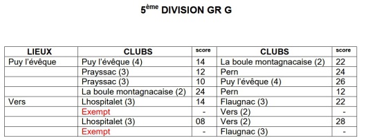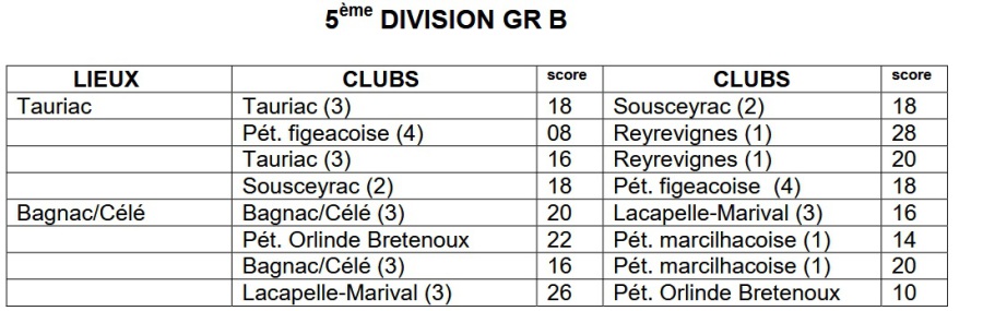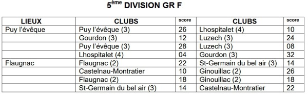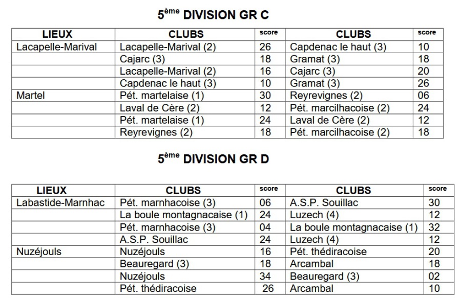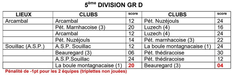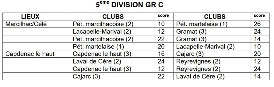 07/09 Résultats et classement du CDC Provençal après la 5ème journée ICI