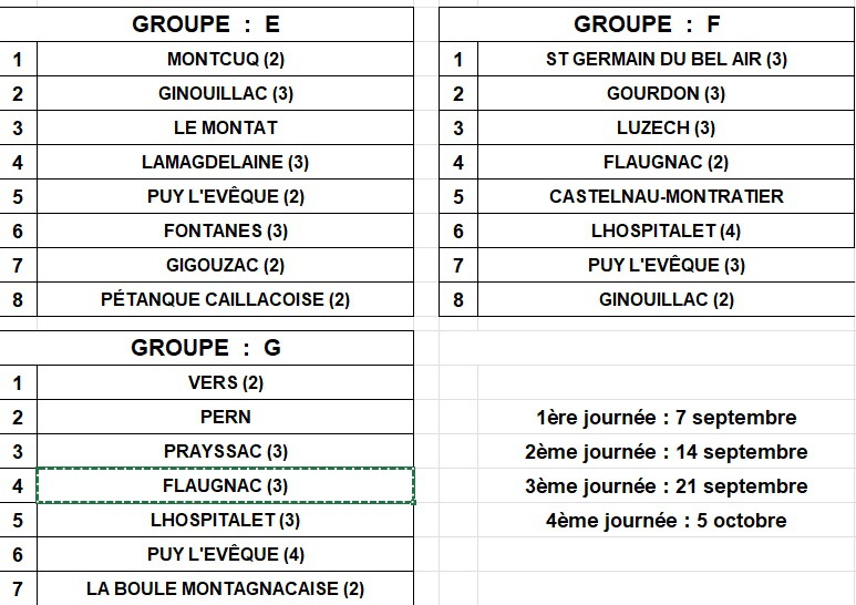 11/10 Concours doublette mixte à Gourdon, report du 15/08