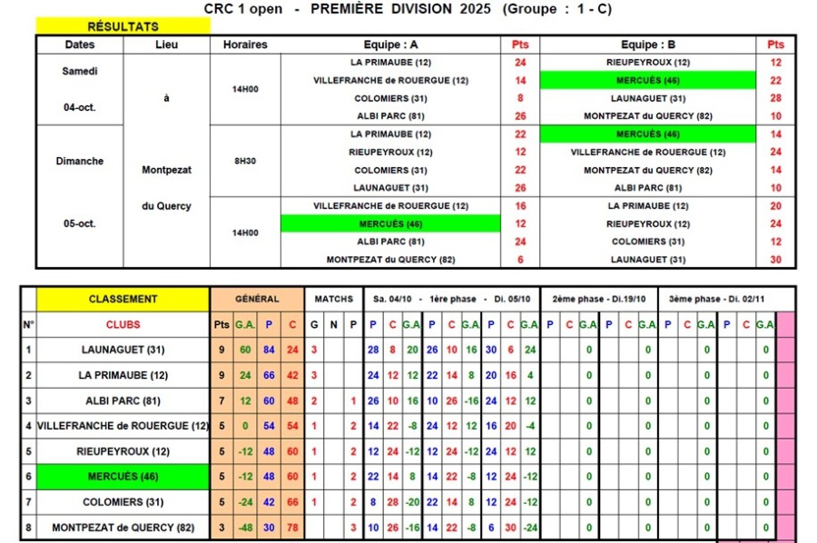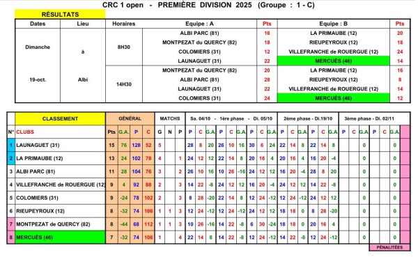 22/10 Résultats et classement CRC 1 Open CRC 2 Open CRC F