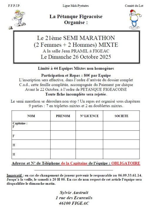 à Cahors ouvert à tous les licenciés organisé par le secteur sud