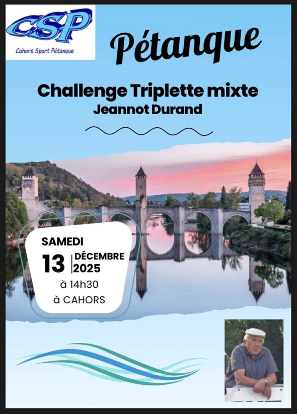 24/01 Concours Triplette Mixte, à Figeac organisé à 14h30 par la Pétanque Figeacoise, engagements +50%