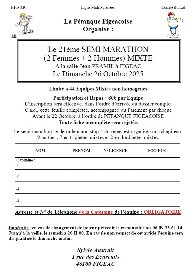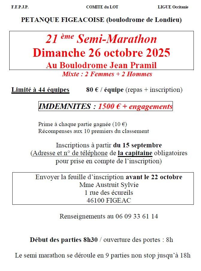 11/10 Concours doublette mixte à Gourdon, report du 15/08