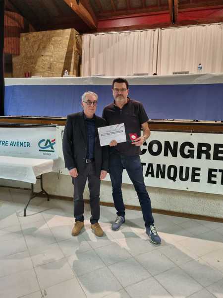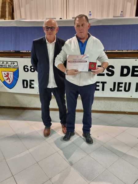 Enfin, la médaille d’Or de la FFPJP a été décernée au Tauriacois, Thierry Oubreyrie, Président du Club de la Pétanque Beau Rivage à Tauriac.